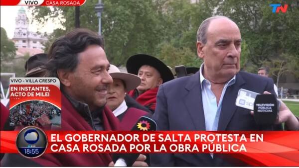 El gobernador se presentó con un grupo de salteños frente a la sede del Ejecutivo nacional para reclamar por obras pendientes. El jefe de Gabinete aseguró que desconocía la protesta y señaló que la continuidad de los proyectos dependerá del desempeño electoral del Gobierno Nacional.