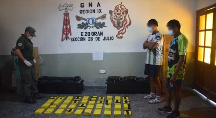 Efectivos del Escuadrón 20 “Orán” de Gendarmería Nacional incautaron más de 41 kilos de cocaína durante un control sobre la Ruta Nacional 50. Durante un control sobre la Ruta Nacional N° 50, altura del kilómetro 46, efectivos de la Sección “28 de Julio” dependiente del Escuadrón 20 “Orán” detuvieron la marcha de un vehículo Renault Kangoo, donde circulaban dos personas mayores y un menor de edad.